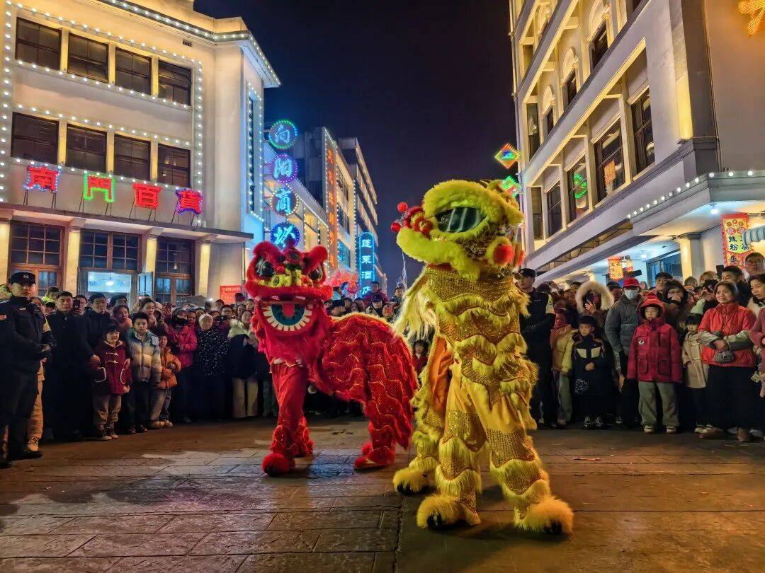 保守风俗取现代创意正在此碰撞。十字街口的舞龙狮率先点燃热情,金狮腾踊、祥龙摆尾;南丰跳傩古朴刚劲,正在街口和城隍庙轮流上演。华光馆前的花伞舞如江南水墨,而赵子仙西医馆前的机械傩舞则带来硬核欣喜,保守非遗取科技连系,引得阵阵惊呼。夜幕下,悠扬的平易近乐取愉快的手鼓励此起彼伏。财神爷巡街撒糖,所到之处福分满满;唯美的“共白头”雪景打卡点更是人气爆棚。