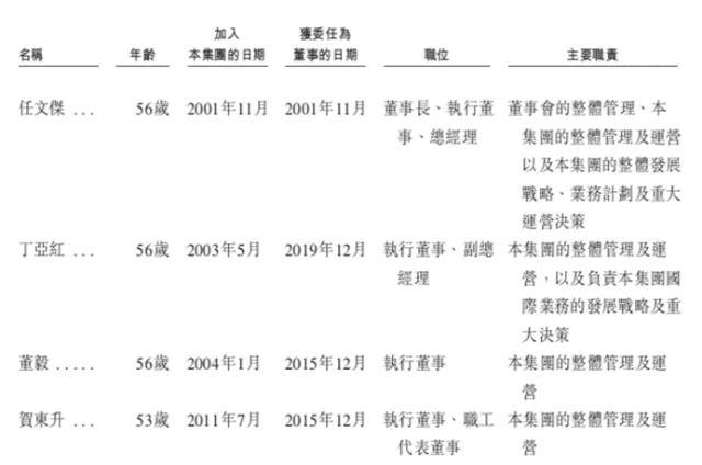 施行董事的平均春秋是55岁。56岁的任文杰任董事长、总司理,56岁的丁亚红任副总司理,别的两位施行董事别离为56岁的董毅及53岁的贺东升。此中,贺东升是施行董事中插手公司最晚的一位,其他三人入司都已跨越20年。