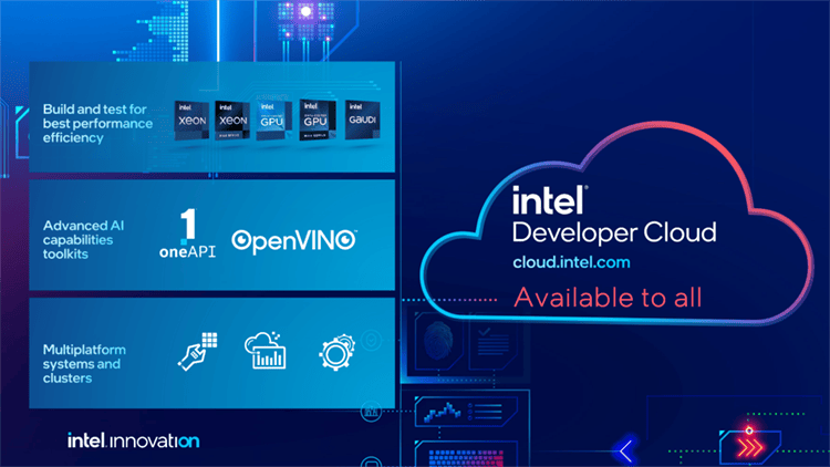 基辛格颁布发表英特尔开辟者云平台全面上线,英特尔开辟者云平台帮帮开辟者操纵最新的英特尔软硬件立异来进行AI开辟,这此中包罗用于深度进修的英特尔Gaudi2加快器,并授权他们利用英特尔最新的硬件平台,如第五代英特尔至强可扩展处置器和英特尔数据核心GPU Max系列1100和1550。