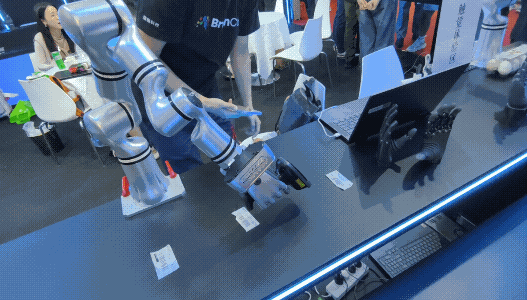 同台展出的还有一款力反馈手套,通过这么个科幻值拉满的手套,就能够把机械手上感遭到了的力量,通过振动的体例,近程反馈到我的手上。当前我们近程节制机械人的时候,就能够通过手套上的震动,来感遭到机械人碰着了啥工具,属于是离科幻片子越来越近了。